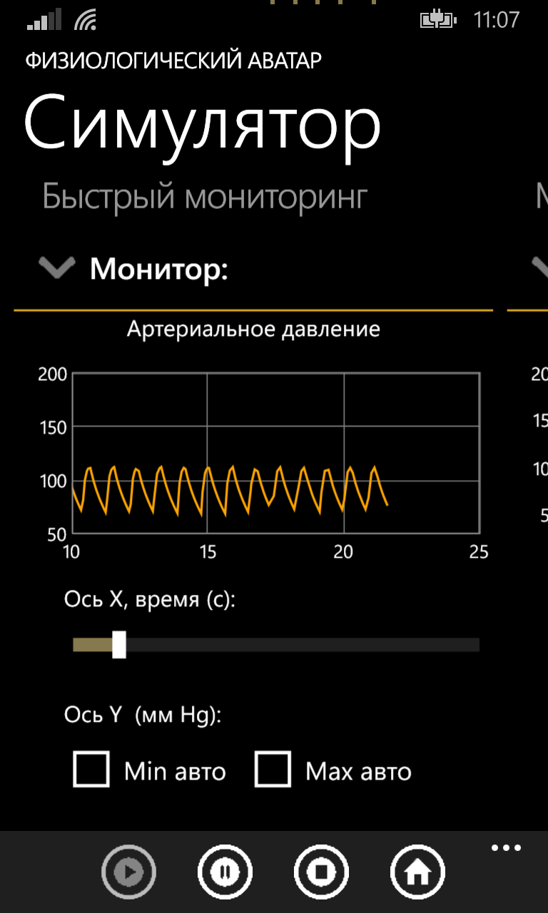 Симулятор используется в клиентских приложениях ФА для того, чтобы изучить поведение Вашего организма в самых разнообразных жизненных ситуациях, в том числе и самых экстремальных условиях. Система управления входными параметрами позволяет создавать разнообразные условия моделирования.